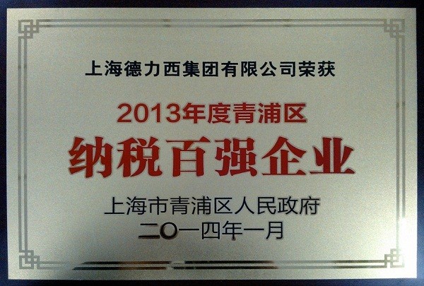 2014 年1 月24 日,2013年度青浦區(qū)納稅百?gòu)?qiáng)企業(yè)表彰會(huì)在青浦工業(yè)園區(qū)隆重舉行。青浦區(qū)委書(shū)記高亢,區(qū)委副書(shū)記、區(qū)長(zhǎng)趙惠琴等領(lǐng)導(dǎo)出席表彰會(huì)。上海德力西集團(tuán)被授予“2013 年度上海市青浦區(qū)納稅百?gòu)?qiáng)企業(yè)”榮譽(yù)稱號(hào)。上海德力西集團(tuán)監(jiān)事會(huì)副主席林少東出席大會(huì)領(lǐng)獎(jiǎng)。